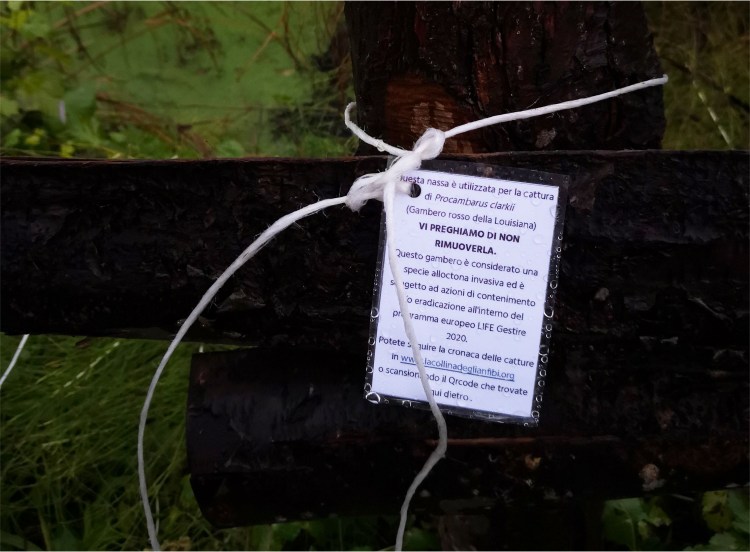 Il tipo di nasse utilizzato è stato appositamente studiato per essere efficace nella cattura di Procambarus clarkii e di altri gamberi alloctoni, non è disponibile per la vendita ed è perfettamente riconoscibile.