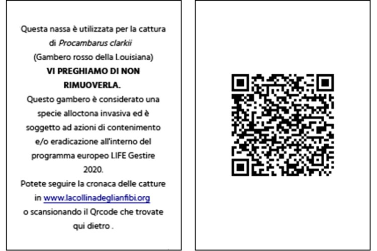 Per ciascuna nassa sono stati predisposti dei cartellini informativi che sono stati applicati ai cordini di recupero.