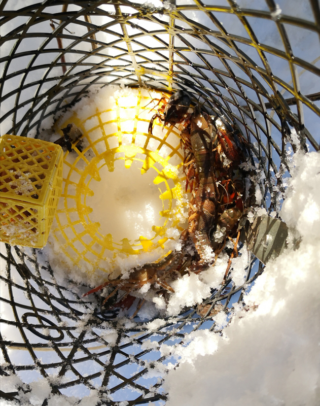 Nonostante il ghiacchio in due delle nasse recuperate sono stati trovati i tenacissimi Procambarus clarkii.