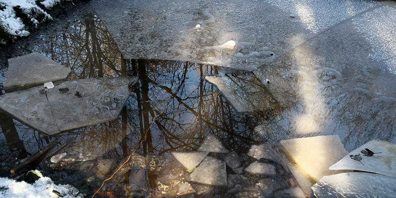 A causa delle basse temperature le pozze sono quasi tutte ghiacciate ad esclusione della pozza del Ponticello e della pozza Rana di Lataste. In particolare uno strato di ghiaccio molto spesso, impossibile da rompere, ricopre lo stagno Perduto.