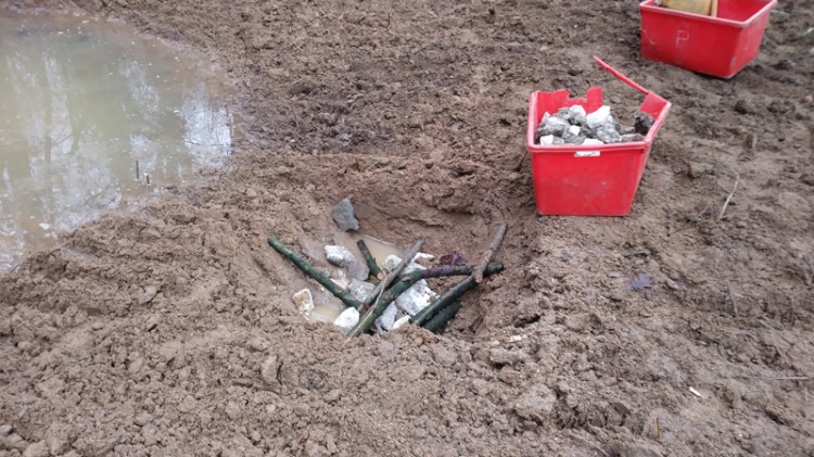 lavori pozza Rospo smeraldino – la costruzione del rifugio per anfibi – 15 gennaio 2021
