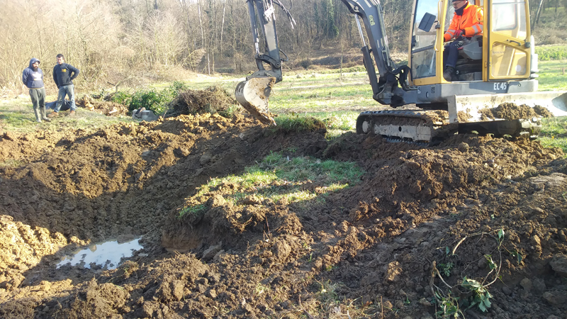 lavori pozza Rana agile – scavo della pozza – 15 gennaio 2021