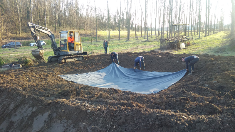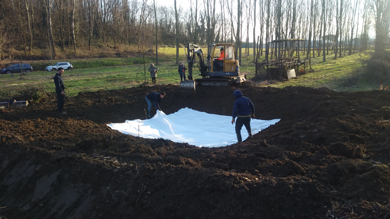lavori pozza rana verde – posa del telo di sottofondo- 28 gennaio 2021