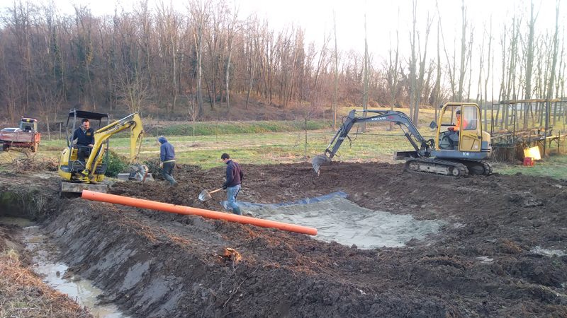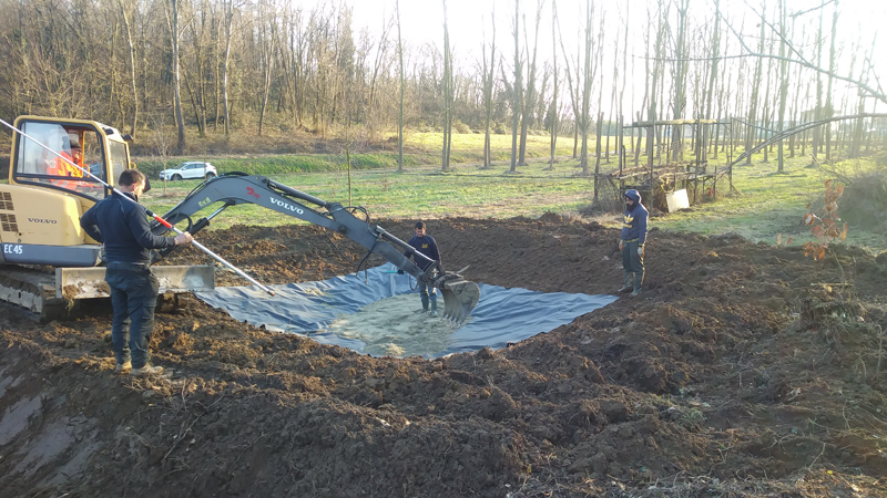 lavori pozza rana verde – scavo della pozza – 28 gennaio 2021