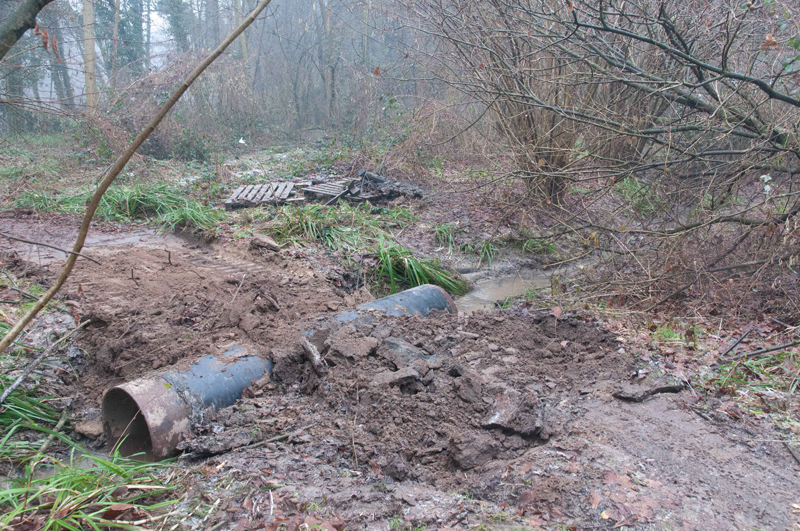 lavori pozza Rana di Lataste – posa tubo di scarico sotto percorso – 15 gennaio 2021