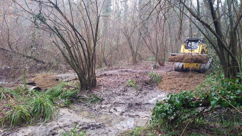 lavori pozza Rana di Lataste – riporto terra per costruzione sponde – 15 gennaio 2021
