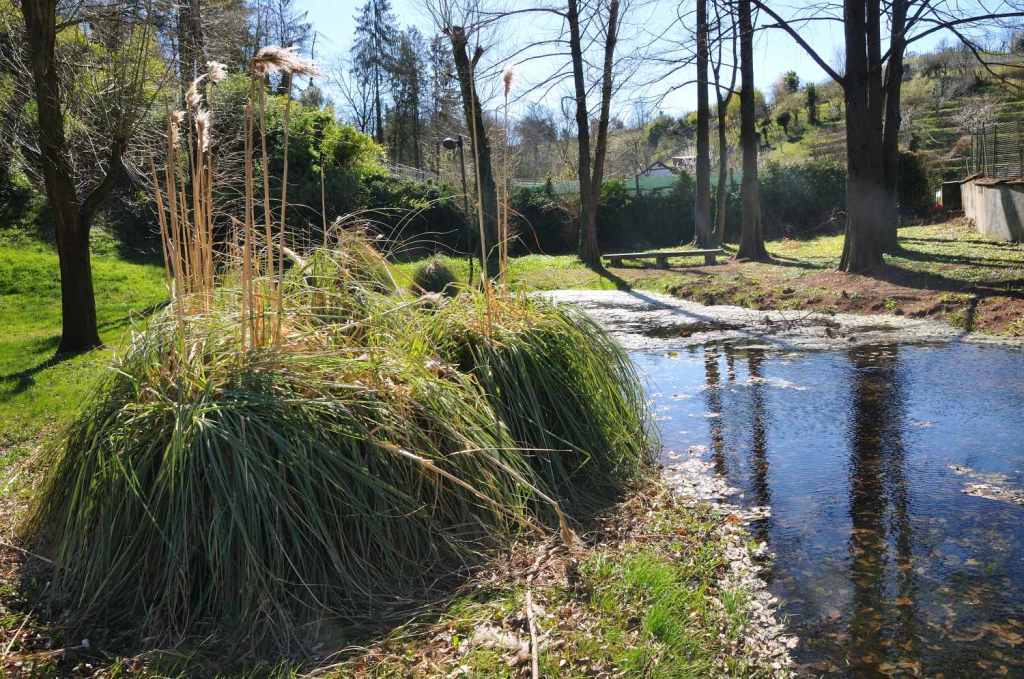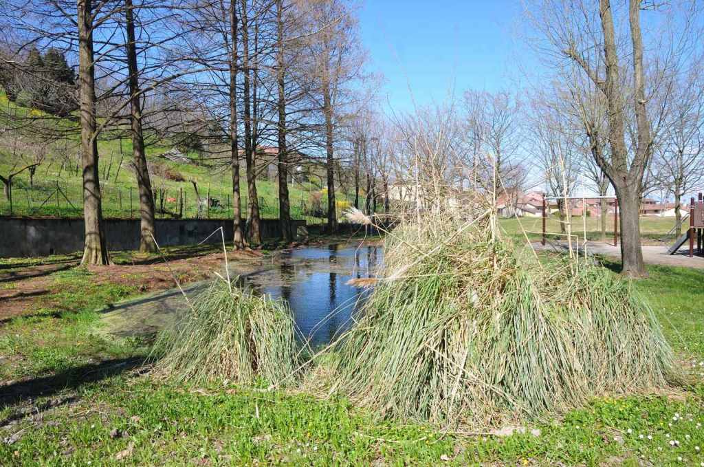 Lo stagno del Parco del Castello di San Colombano è un piccolo ecosistema che in pieno centro urbano ospita ogni anno numerosissime ovature di Rane rosse.