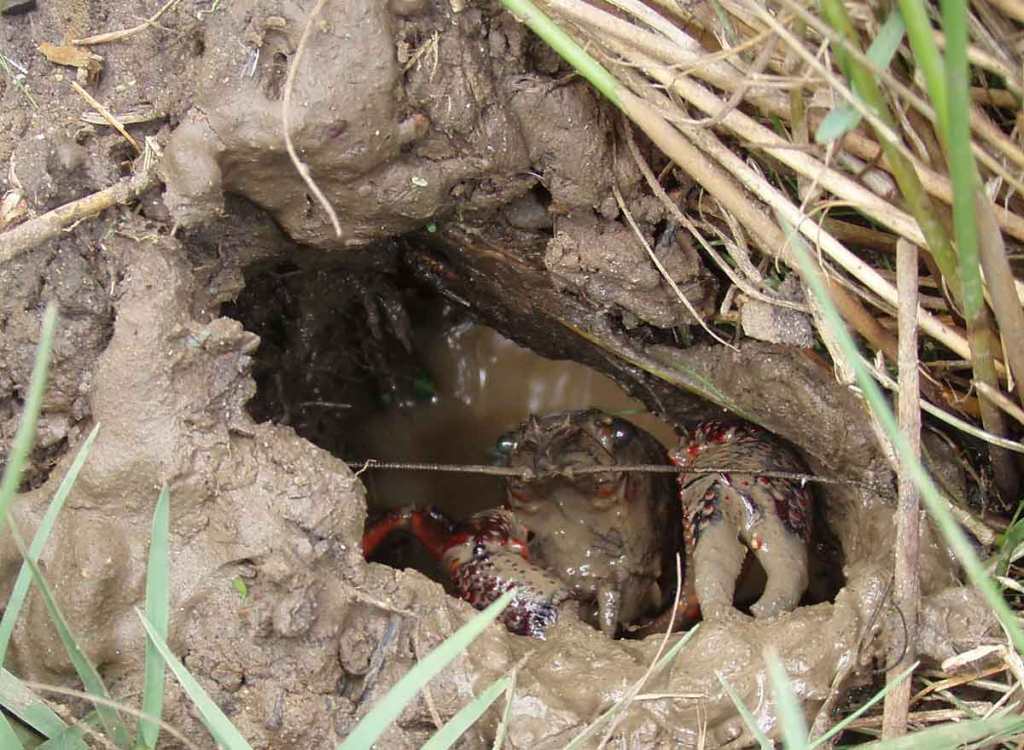 - Infine, quando l’escavazione delle tane è intensa, può causare seri danni ad aree agricole e ricreative, danneggiando ad esempio piantagioni di riso, dighe, argini di canali di irrigazione, di fiumi e di laghi.